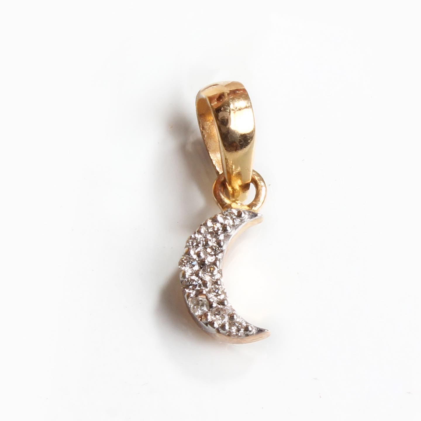 Introducing the Gold Diamond Half Moon Pendant by Astitva Jewels, an exquisite piece that captures the mystical beauty of the night sky. This stunning pendant features a delicate half moon design, crafted from luxurious gold and adorned with sparkling diamonds. The radiant diamonds accentuate the crescent shape, creating a dazzling display of elegance and charm. Perfect for both special occasions and everyday wear, this pendant adds a touch of celestial wonder to any outfit.