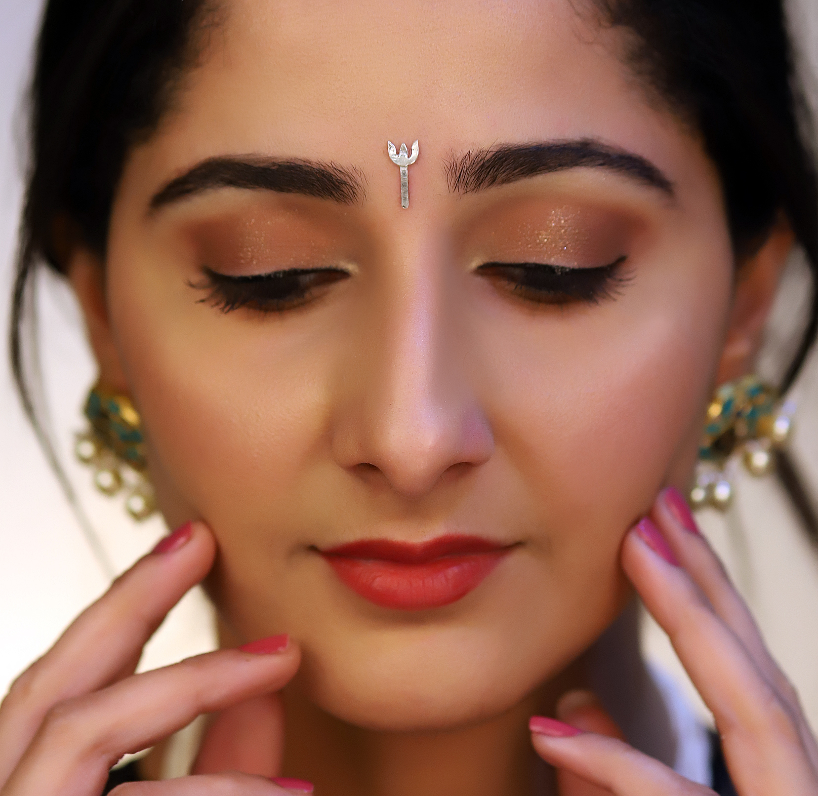 Channel the power and grace of the Divine Trishool Silver Bindi. Inspired by the sacred symbol of the trishool, this bindi connects you to a rich spiritual heritage while enhancing your contemporary style.