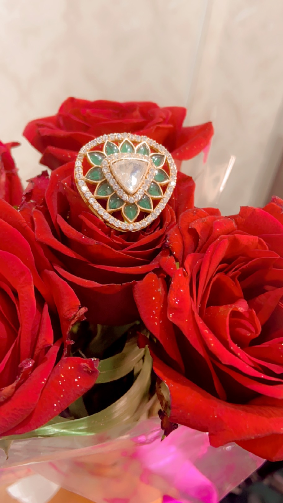 Step into a world of timeless elegance with our Golden Meadows Kundan Zircon Ring. Crafted with exquisite silver gold plating, lustrous kundan stones, shimmering zircon gems, and vibrant green enamel accents, this ring is a masterpiece of sophistication and style. Its intricate design and luxurious finish make it a stunning addition to any jewelry collection, perfect for adding a touch of glamour to any occasion.