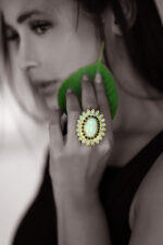 In the heart of the night, where darkness meets the shimmering light, there lies a ring that captures the essence of midnight allure. Its black onyx, like the depths of the cosmos, cradles opal and pearls, reflecting the moon’s gentle glow amidst the darkness. Adorn yourself with this statement ring and step into the enchanting world of midnight dreams, where every glance reveals a universe of mystery and magic.