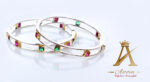 Introducing the Harmony of Hues Dual Bangle from Astitva Jewels. This unique bangle set features two interconnected bangles, adorned with an intricate design of vibrant green and pink stones. Crafted with precision, these bangles showcase a perfect blend of traditional artistry and contemporary elegance, making them an exquisite addition to your jewelry collection.