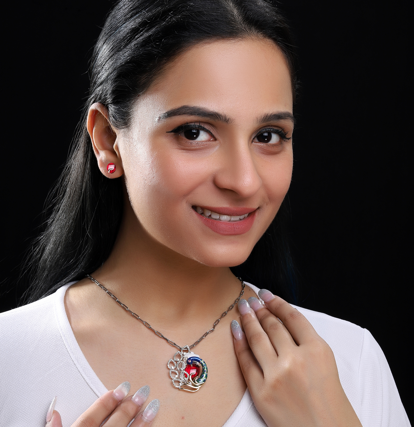 Embrace the elegance of a peacock with the Gold Diamond Red Stone Peacock Pendant. Let this exquisite piece reflect your unique grace and timeless allure.