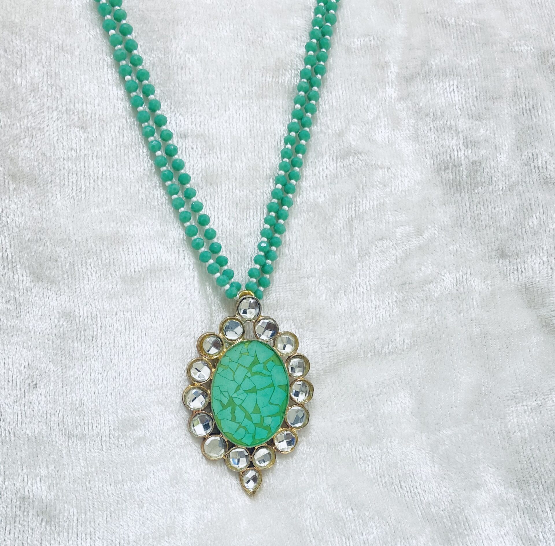 Elevate your jewelry collection with this beautifully crafted 925 Silver Gold Polished Kundan Pendant. The lush green enamel paired with intricate kundan work showcases the artistry and attention to detail synonymous with Astitva Jewels. Accentuated with green and delicate white beads, this pendant embodies both grace and sophistication. Perfect for festive occasions or to add a touch of luxury to your everyday attire, this piece is a testament to timeless beauty and craftsmanship.