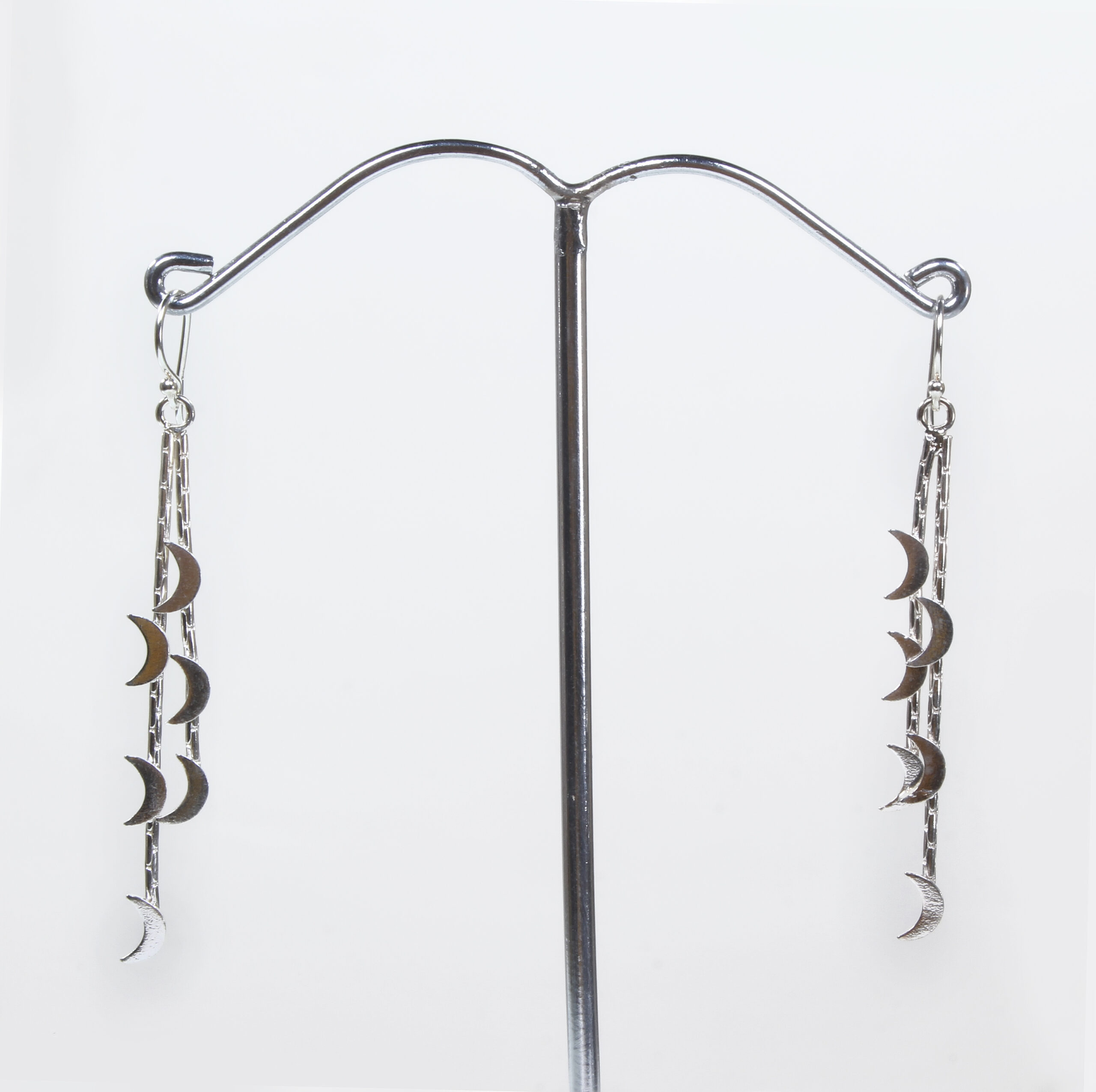 - The length of the chain should be such that the half-moon hangs gracefully just below the earlobe.