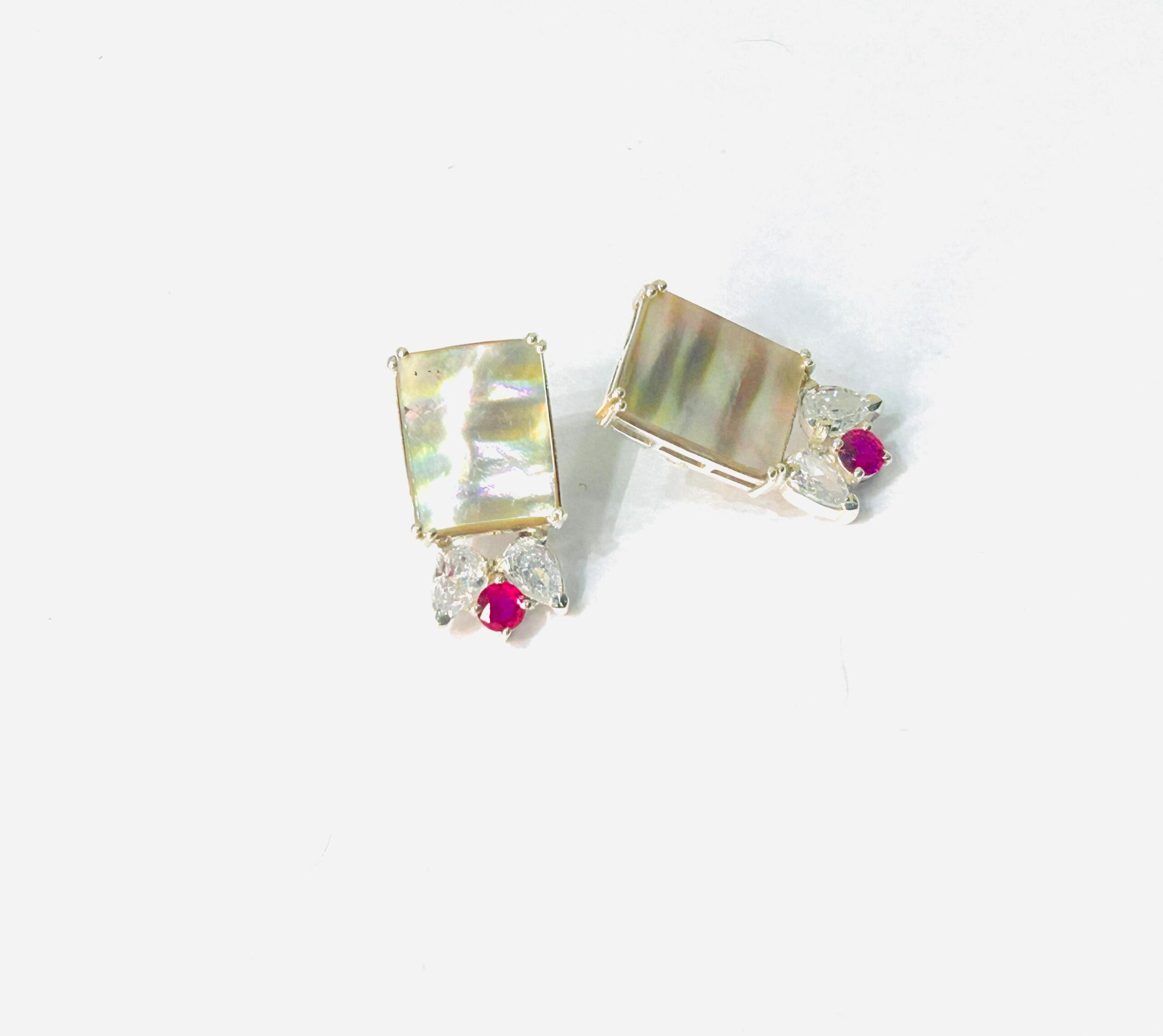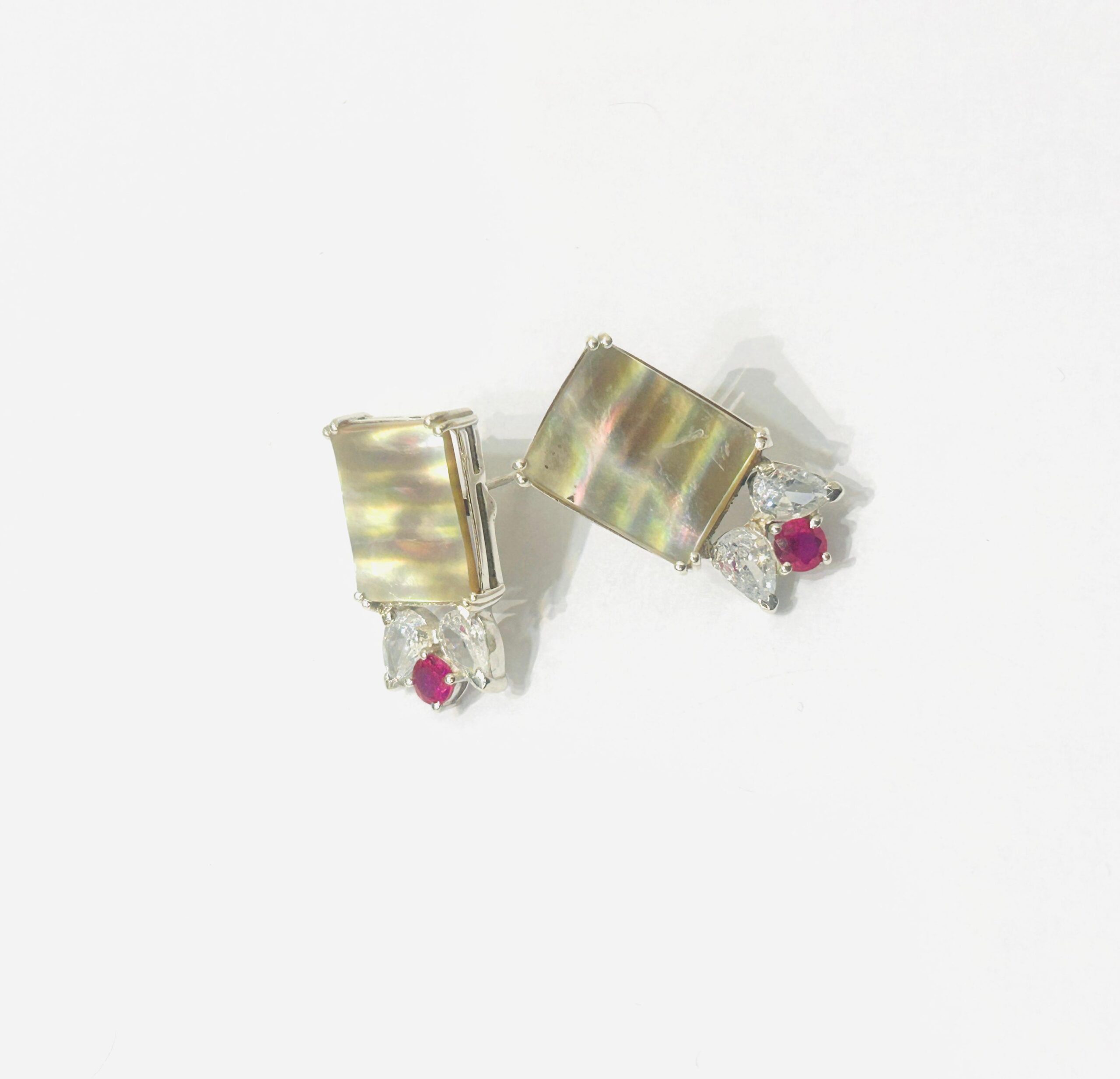Elegant and timeless, these silver earrings feature lustrous mother of pearl complemented by sparkling cubic zirconia. The combination of natural beauty and refined sparkle makes these earrings a perfect accessory for both casual and formal occasions.