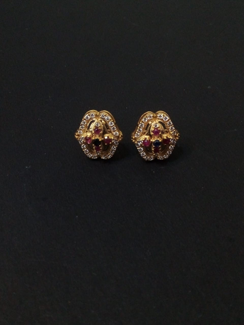 Introducing the Royal Bloom Earrings from Astitva Jewels — a magnificent symphony of heritage charm and contemporary design. Crafted from pure 925 silver and coated with luxurious gold plating, these designer earrings are embellished with brilliant Fianit  stones, along with rich ruby and emerald accents. The vibrant hues bring a regal touch, making them a stunning choice for festive occasions, weddings, or special celebrations. Lightweight, hypoallergenic, and exquisitely detailed, they are designed for effortless wear and enduring beauty.