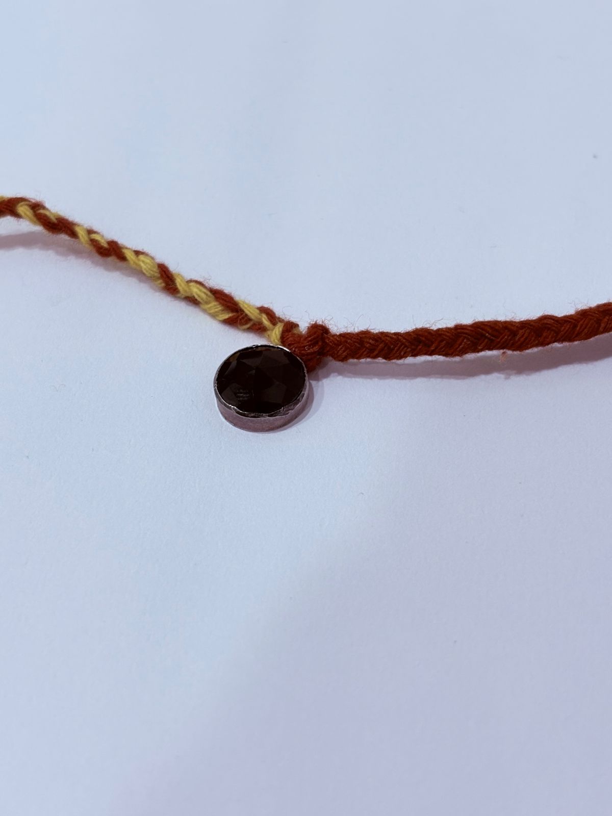 The Shakti Rakhi by Astitva Jewels is a perfect blend of strength, style, and tradition. Handcrafted in 925 sterling silver, this rakhi features a striking black onyx stone, known for its protective and grounding properties. Tied with the sacred red moli thread, Moli is believed to bring positivity, happiness, and overall well-being this rakhi is designed to offer not just protection, but a sense of strength, stability, and timeless elegance.