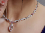 Celebrate the colors of elegance with the Tricolor Elegance Zircon Necklace, where the vibrant hues of pink, green, and white zircons come together in perfect harmony. Let this necklace be a symbol of your vibrant spirit and refined style.