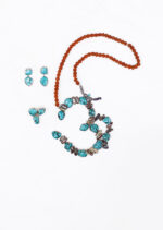 Introducing the Divine Harmony Turquoise Om Pendant and Rudraksha Mala Set by Astitva Jewels, a sacred ensemble that beautifully combines spirituality and elegance. This exquisite set features a pendant adorned with a large turquoise stone and the Om symbol, intricately crafted in high-quality sterling 925 silver. The pendant is paired with a traditional Rudraksha mala, adding a touch of spiritual significance and natural beauty. Completing the set are matching turquoise and silver ring and earrings, each showcasing the captivating charm of the turquoise stone. Perfect for spiritual gatherings, meditation, or adding a touch of divine elegance to your everyday look, this set embodies the essence of tranquility and grace.