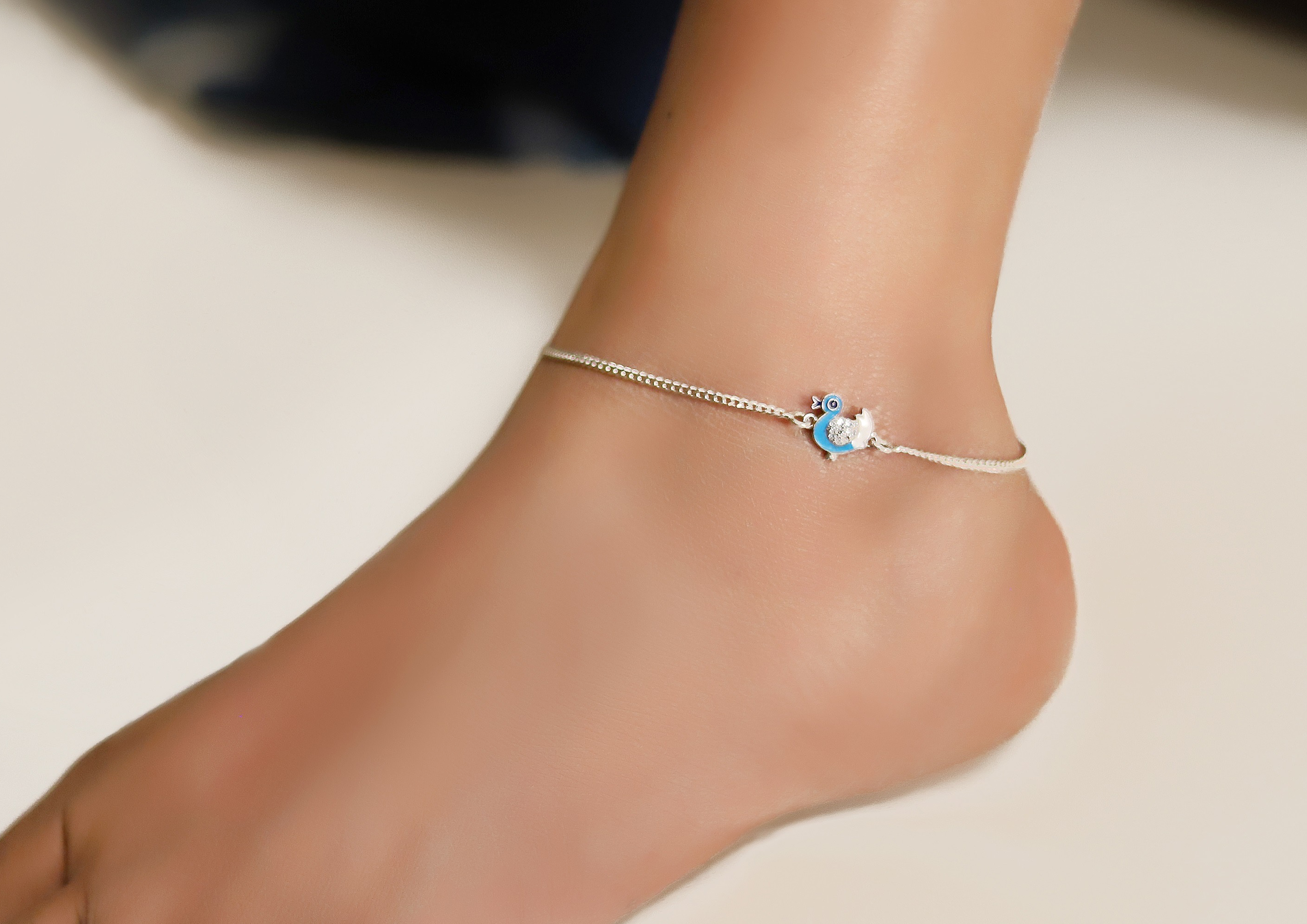 Silver Enamel Anklet with Zircon Duck Design. This exquisite piece features meticulously crafted duck motifs, each brought to life with vibrant enamel colors and sparkling zircon accents. The anklet combines playful elegance with expert craftsmanship, making it a perfect accessory for those who appreciate unique and charming jewelry.